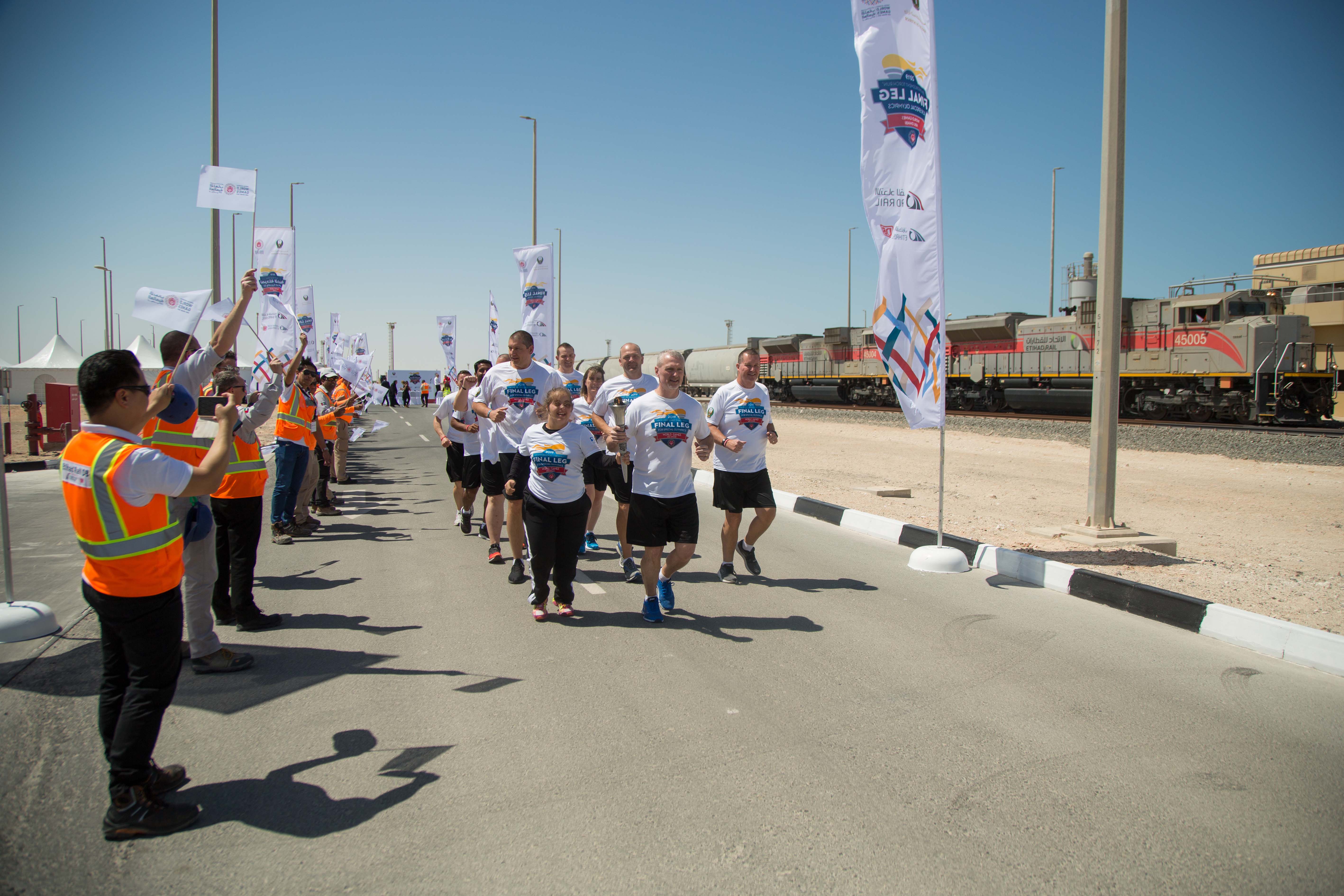 Etihad Rail has organised a ceremony at its headquarters in Mirfa, in the Al Dhafra Region, to receive the Flame of Hope for the Special Olympics World Games 2019, which are being hosted in the UAE from March 14th. The event was attended by the CEO of Etihad Rail and the CEO of Etihad Rail DB, along with a number of employees of both companies.Etihad Rail is proud to be one of the landmark projects on the Flame of Hope tour; as such a prestigious Olympic symbol represents the highest values of friendship, tolerance and peace. The UAE is sending out a message of tolerance and humanity to the world by hosting the events of the Special Olympics World Games, one of the most important and inclusive sporting events for people of determination.The choice of Etihad Rail’s operations headquarters as a part of the Flame of Hope tour reflects the importance of the project, a major national endeavour linking all of the emirates and connecting the UAE with the GCC.A select group, called “Guardians of the Flame of Hope”, is carrying the flame during its tour of various landmarks across the emirates, consisting of Special Olympics athletes and hundreds of police officers from around the world.The Flame of Hope has now reached Abu Dhabi in preparation for the opening ceremony of the Special Olympics World Games 2019, which will be hosted in Abu Dhabi from 14th -21st March as the world’s largest unified and inclusive sporting event.